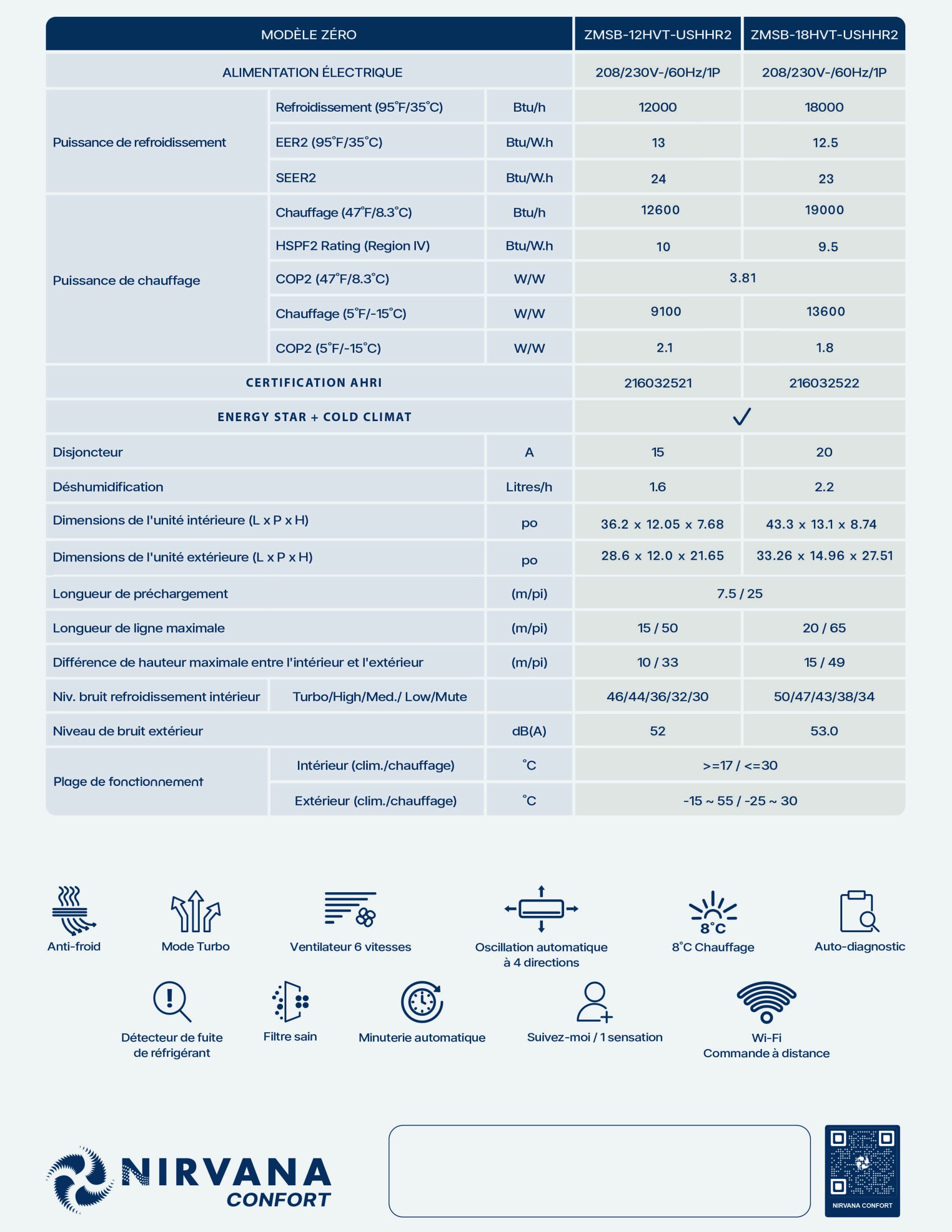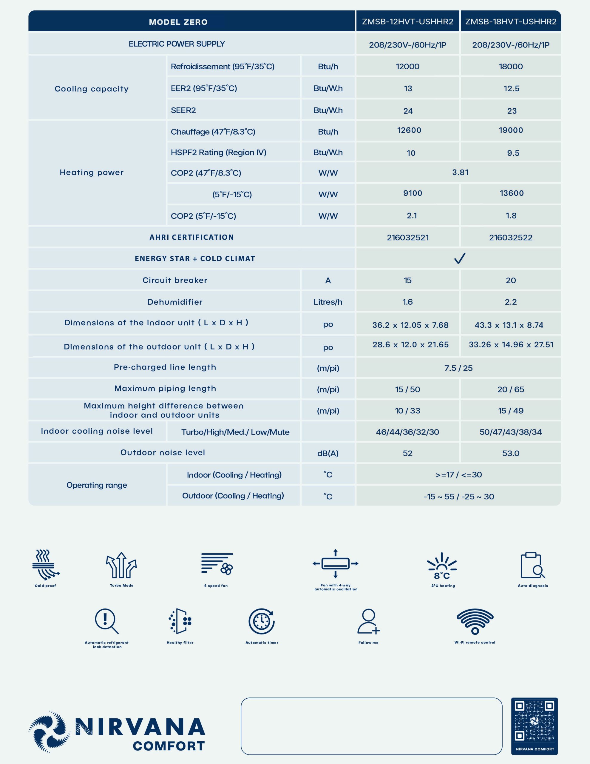 - Modèles certifiés Neep, AHRI et Energy Star 12K-18K